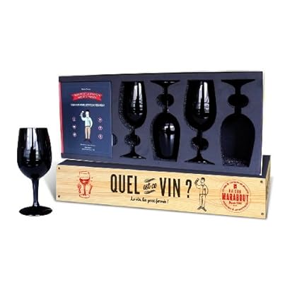 Les accessoires : 4 verres ballons noirs de dégustation à l'aveugle (format INAO). Une chaussette noire pour masquer la bouteille. Le livre : 170 x 214. Reprise partielle du contenu du titre de découverte du vin de Ophélie Neiman « Mon premier guide des vins » parution en septembre 2013.